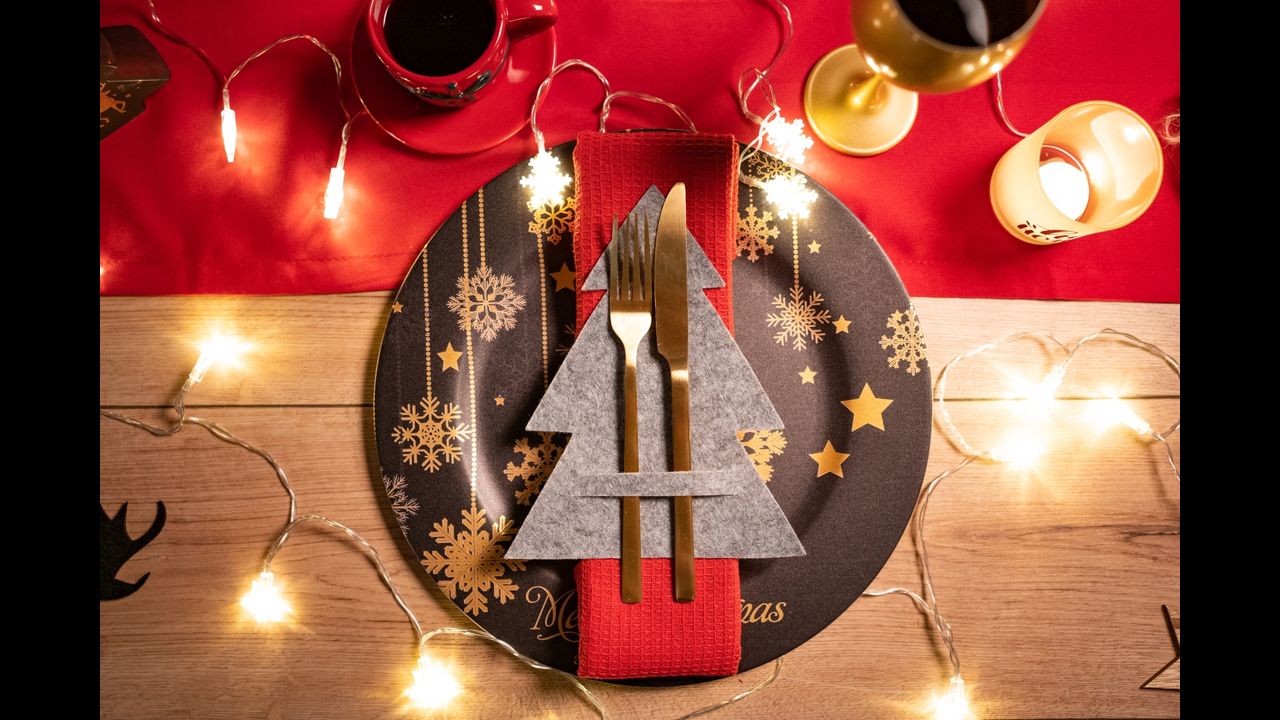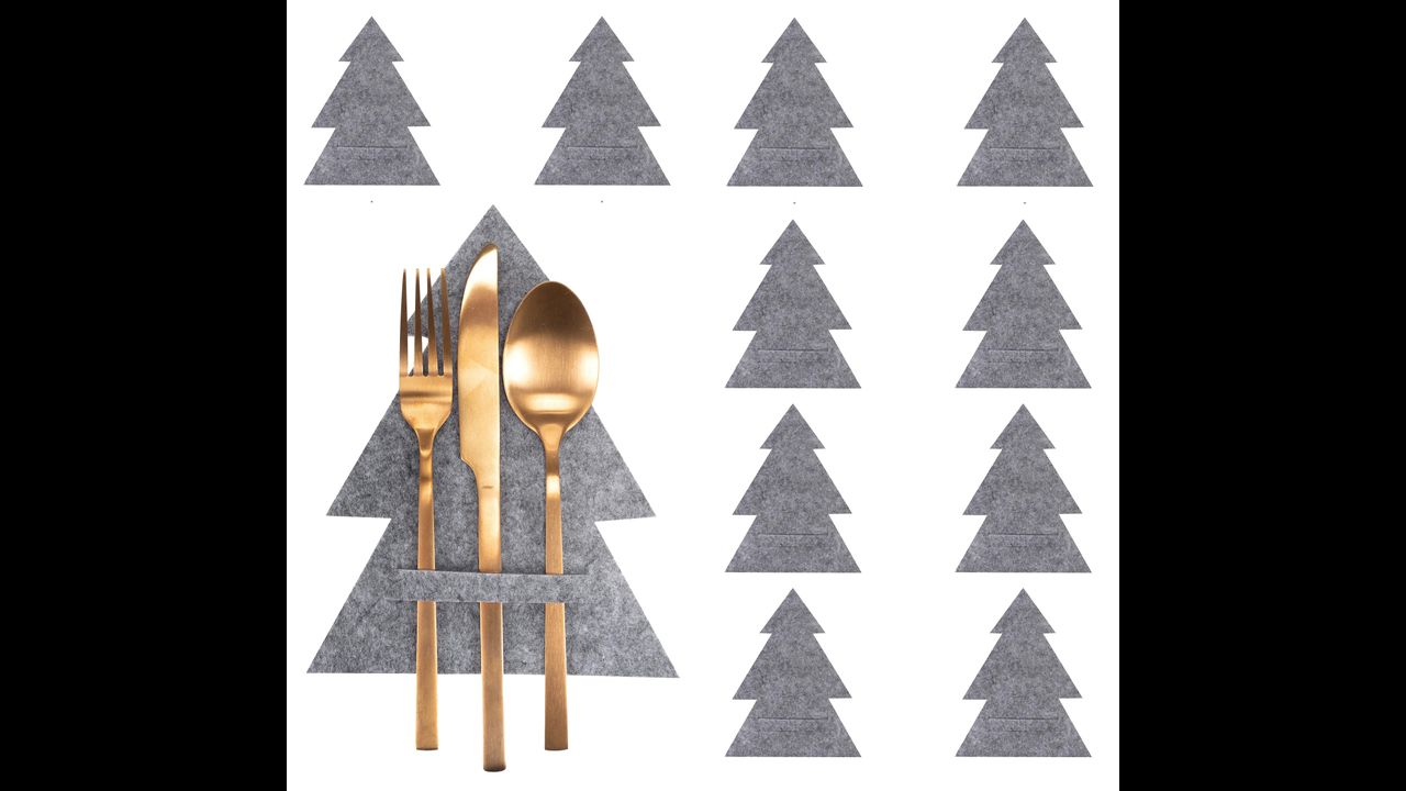 Piękne dekoracyjne pokrowce na sztućce z motywem Choinki. Wspaniała dekoracja stołu w świątecznym okresie. Pokrowce na sztućce z serii świątecznej sprawią, że Boże Narodzenie będzie jeszcze piękniejsze.