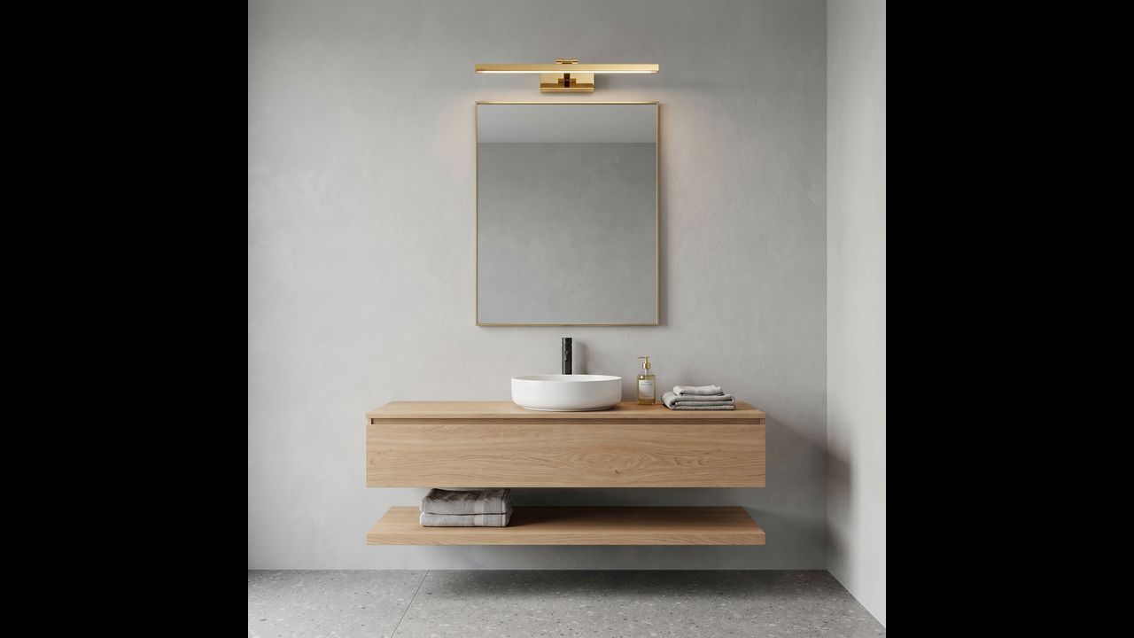 Esalta la bellezza dei tuoi specchi e dipinti grazie all’applique a LED in finitura Oro. Questa elegante lampada da 60 cm di larghezza è il connubio perfetto tra minimalismo moderno e funzionalità, portando un tocco di lusso nei tuoi interni. Grazie alla testa regolabile e alla tonalità di luce neutra, l’applique garantisce un’illuminazione perfetta dei dettagli, diventando un elemento indispensabile per un bagno, un soggiorno o una camera da letto moderni.
