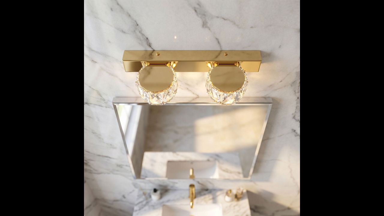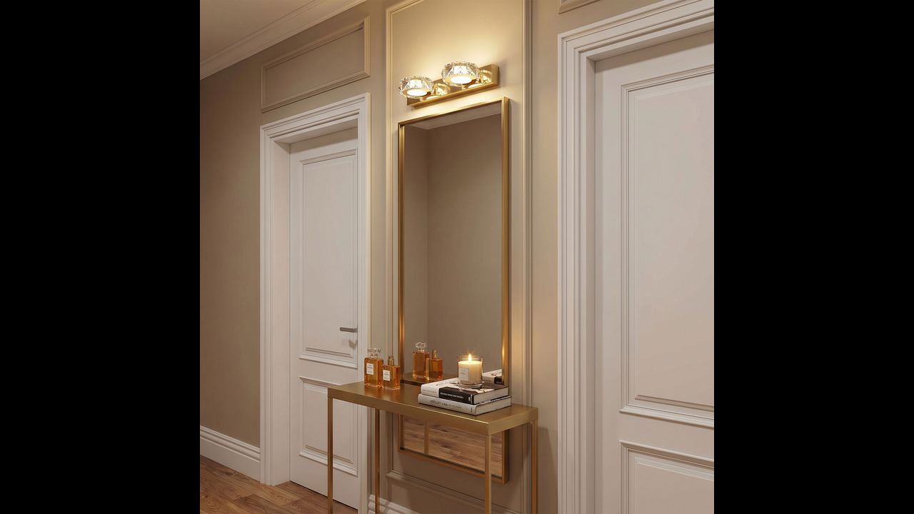 La struttura dorata ed elegante si abbina perfettamente ai dettagli effetto cristallo, creando un insieme armonioso e lussuoso. L’applique si inserisce perfettamente in ambienti glamour, modern classic ed eleganti interni contemporanei, non solo come fonte di luce, ma anche come raffinato elemento decorativo.