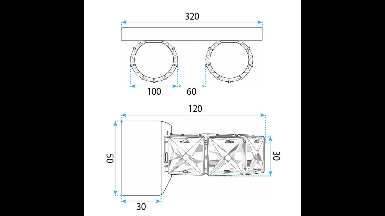 L’applique è dotata di paralumi rotondi realizzati con elementi sfaccettati ispirati al cristallo, che diffondono la luce in modo splendido. I raggi che li attraversano creano suggestivi riflessi luminosi sulle pareti e nell’ambiente circostante, regalando all’interno un’atmosfera piacevole, soffusa e ricca di brillantezza.