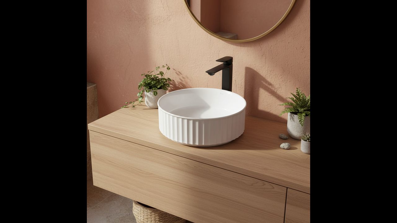 Presentiamo un lavabo da appoggio che donerà al vostro bagno un aspetto moderno e un’elevata funzionalità. Il lavabo è realizzato in ceramica sanitaria di alta qualità. La superficie esterna è rigata, creando un interessante effetto visivo che conferisce al bagno un carattere unico.