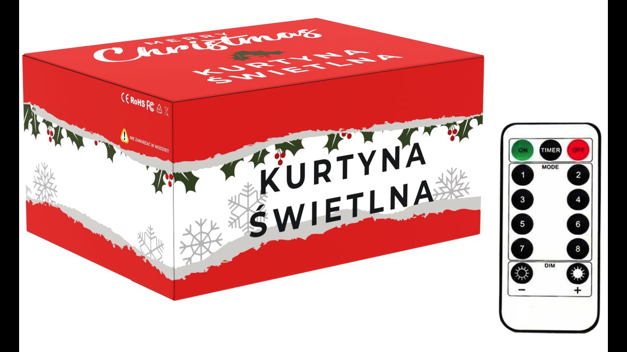 Do zestawu dołączony jest pilot zdalnego sterowania, umożliwiający włączenie oraz wyłączenie, rozświetlenie lub ściemnienie, a także tryby migotania/świecenia całej kurtyny.