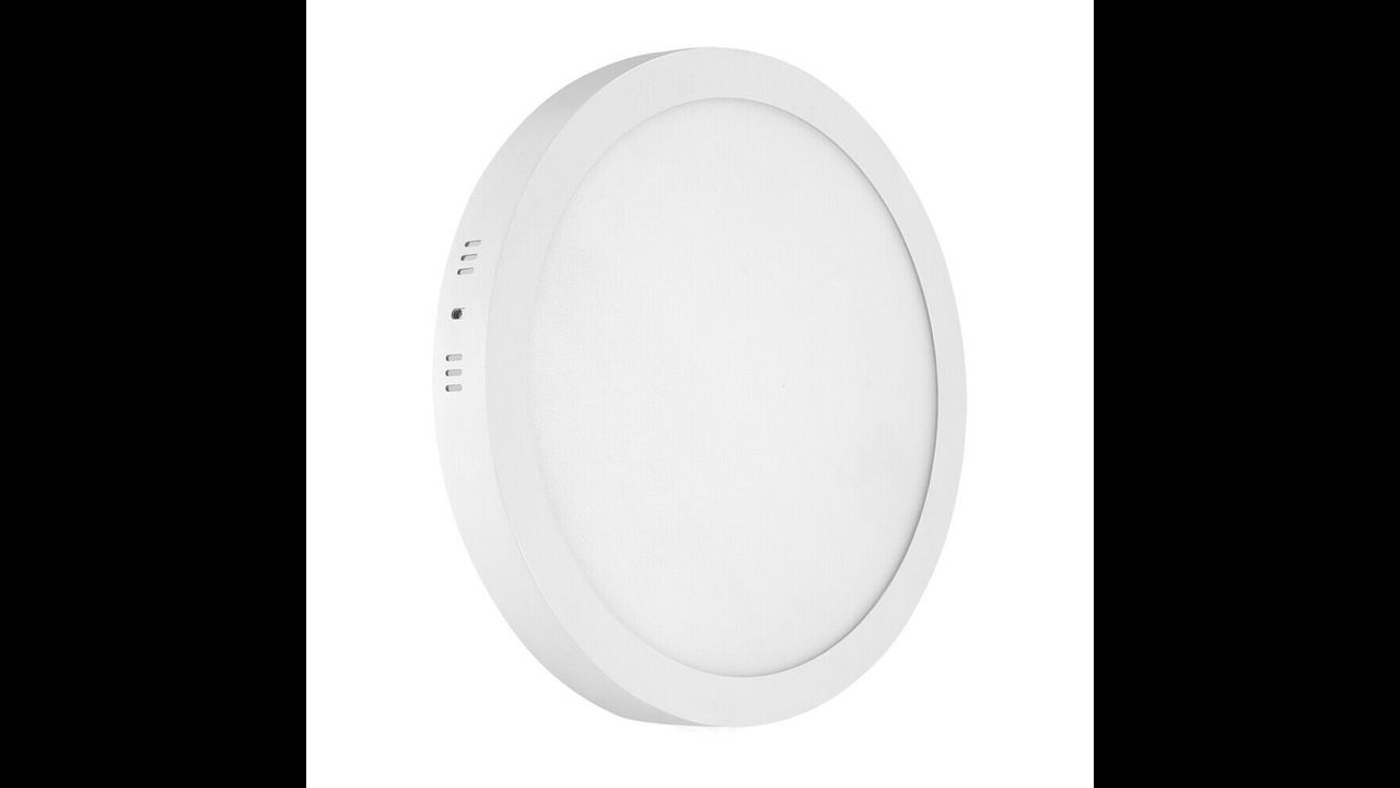 Panou rotund montat pe suprafață, din aluminiu, acoperit cu pulbere. Cadrul subțire oferă un aspect elegant, care va funcționa în orice cameră. Perfect pentru clădiri rezidențiale, magazine și birouri. Setul include suporturi de montare și o sursă de alimentare Panoul este rezistent la pulsee de tensiune din rețea, iar panoul în sine funcționează cu lumină continuă, fără efectul de pâlpâire. Panoul este fabricat din aluminiu și PVC.