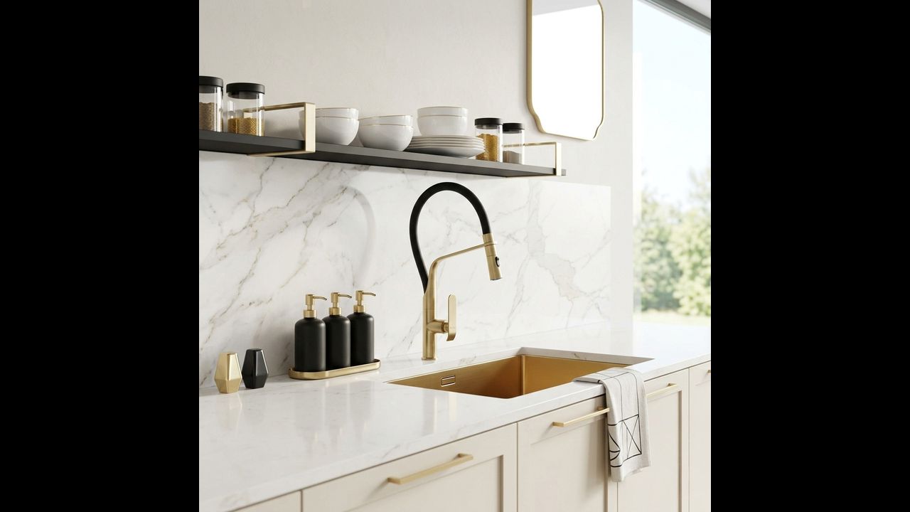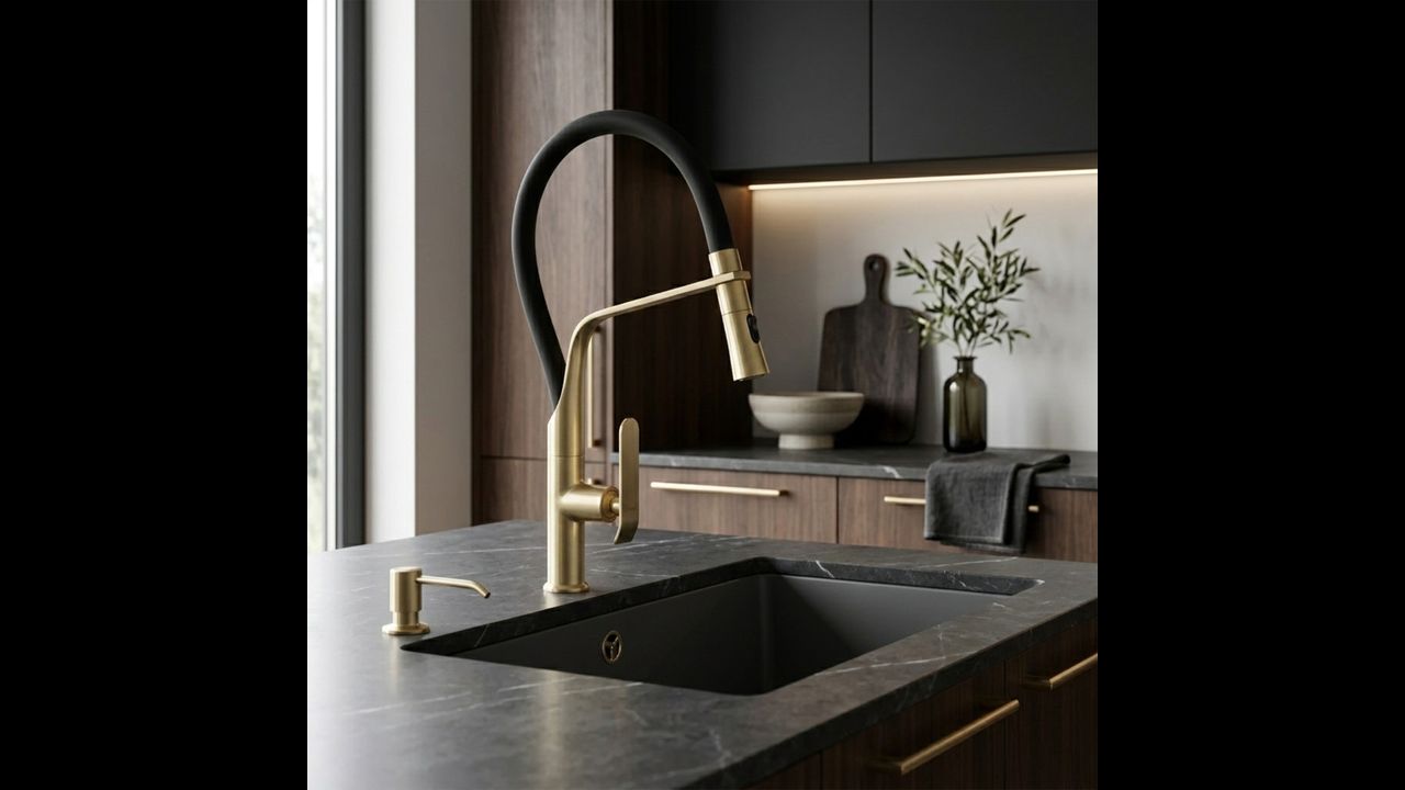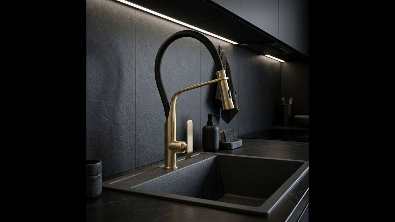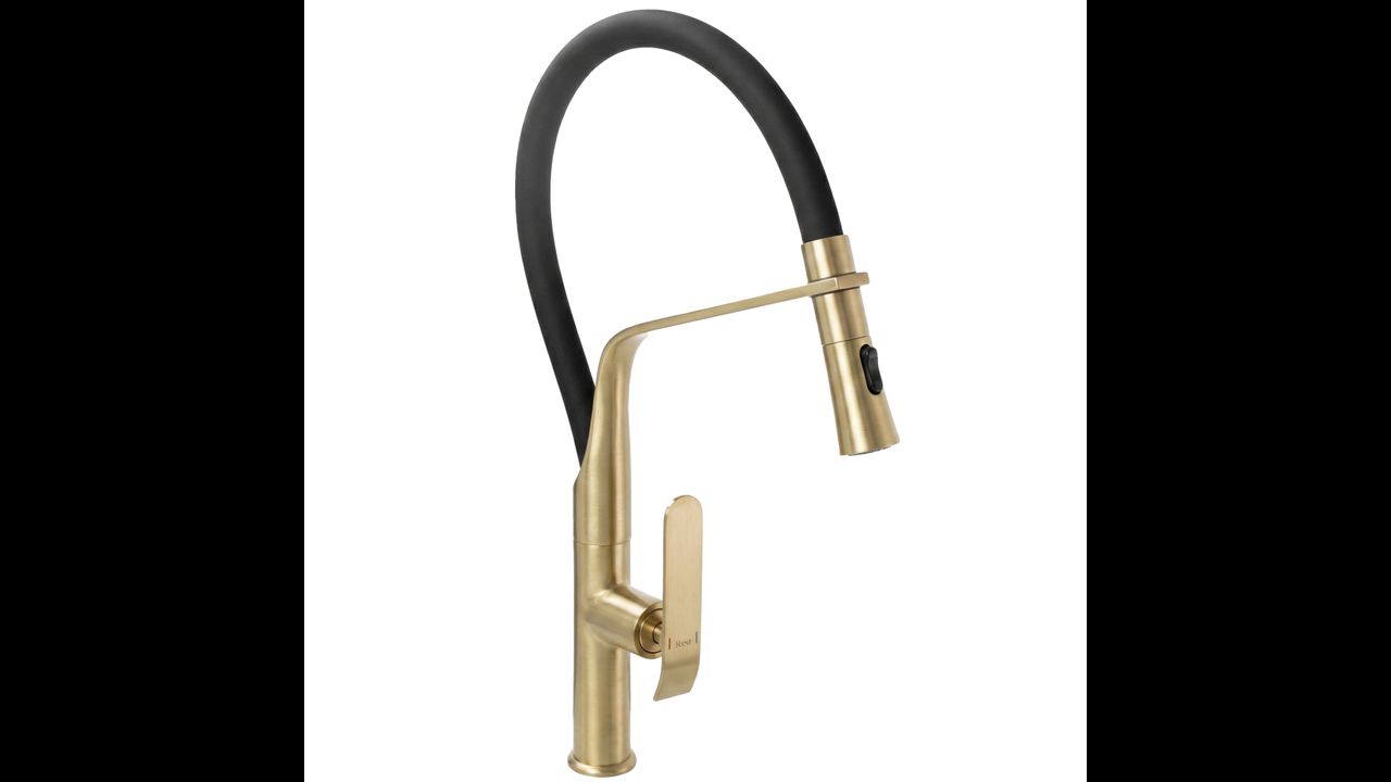 Rubinetto da cucina Rea Castor in nero e oro spazzolato è la base di una cucina funzionale e moderna, dove un’estetica audace incontra un’elevata praticità d’uso. Il corpo solido in ottone garantisce stabilità e durata nel tempo.