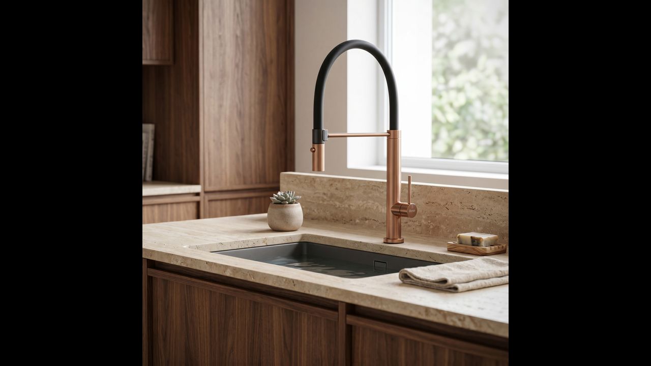 Il rubinetto da cucina Rea Viera nella tonalità Rame Spazzolato (Brushed Copper) è una proposta per chi desidera introdurre nella propria cucina colori caldi e unici con un tocco professionale. Il suo design industriale, basato su un arco flessibile, unito alla lussuosa finitura in rame, crea un elemento decorativo d’impatto, perfetto per ambientazioni loft, moderne e modern classic.