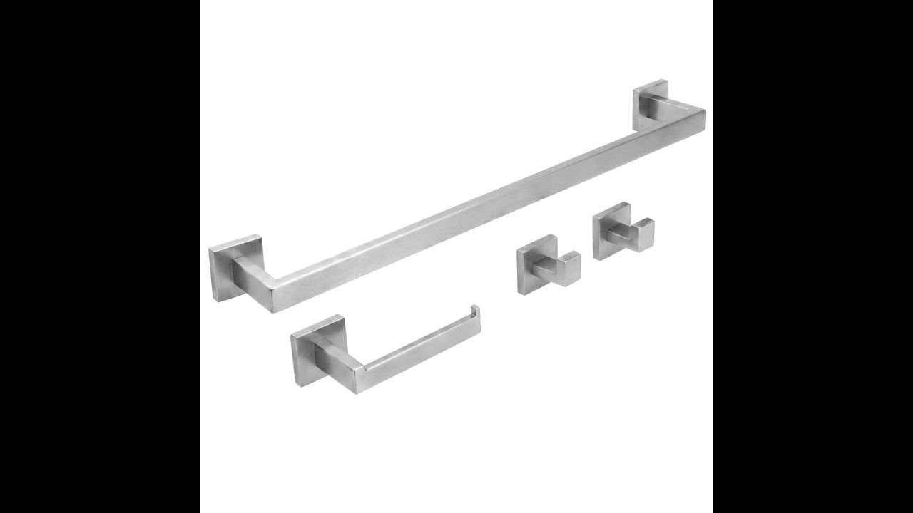Il set di accessori da bagno Rio è una soluzione elegante e funzionale, perfetta per qualsiasi bagno moderno. Il set include un portasalviette, un portarotolo e due pratici ganci da bagno, creando un insieme coerente e raffinato per l’uso quotidiano.
