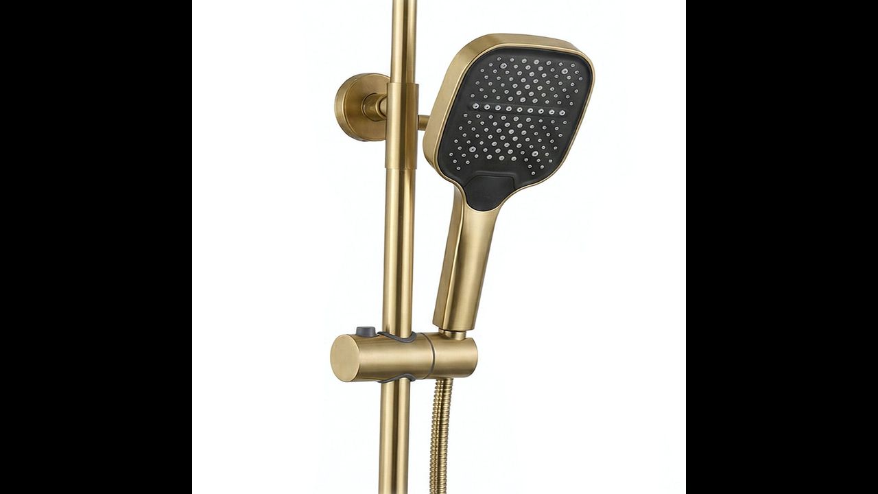 Dona al tuo bagno un carattere lussuoso con il set doccia esterno Rea Arlo Brushed Gold. Questo modello con finitura Oro Spazzolato unisce un design geometrico a una tonalità calda e raffinata. Il corpo del miscelatore in ottone e la resistente finitura PVD garantiscono affidabilità e un aspetto impeccabile nel tempo.