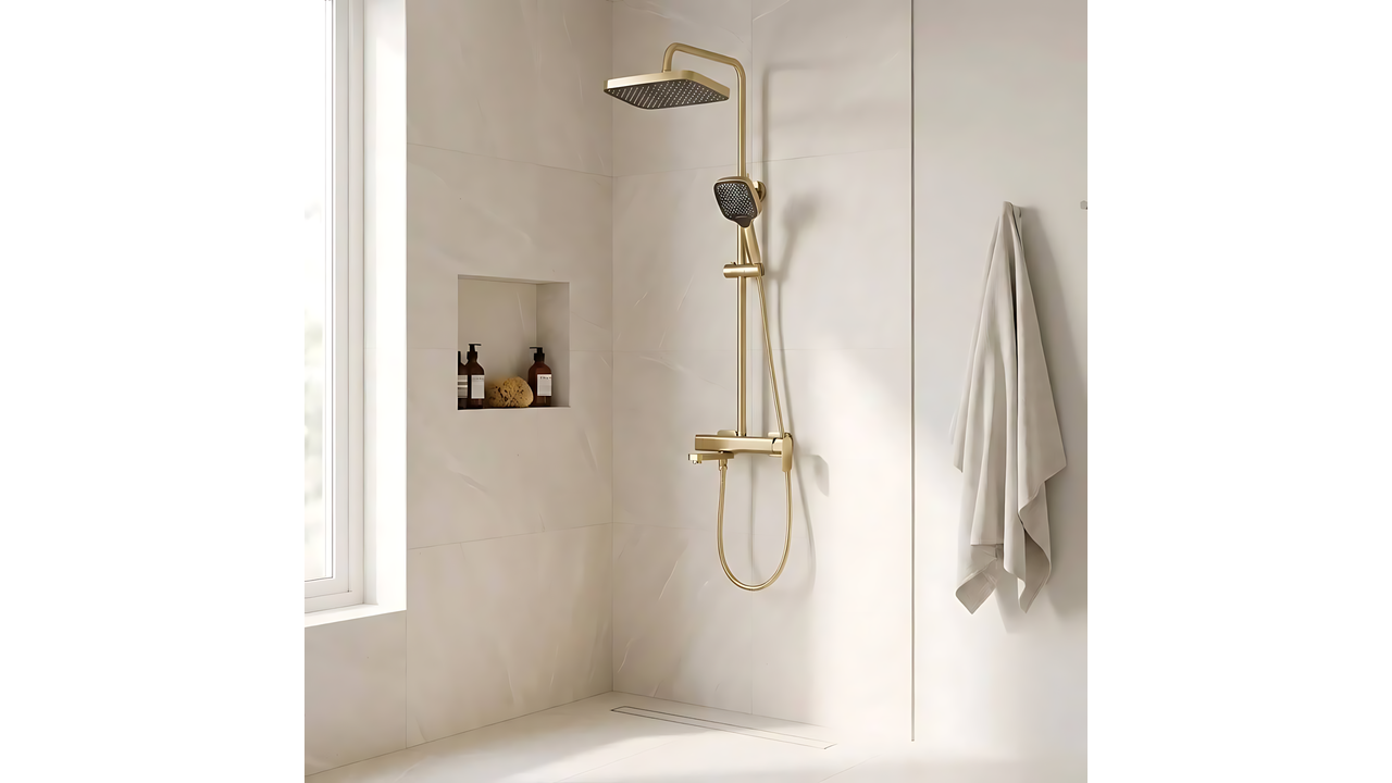 Il set Rea Arlo Brushed Gold è la scelta ideale per il tuo bagno. L’abbinamento tra oro spazzolato e forme geometriche rende questa rubinetteria il punto focale della zona doccia.