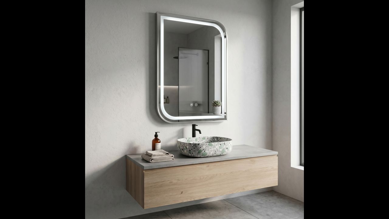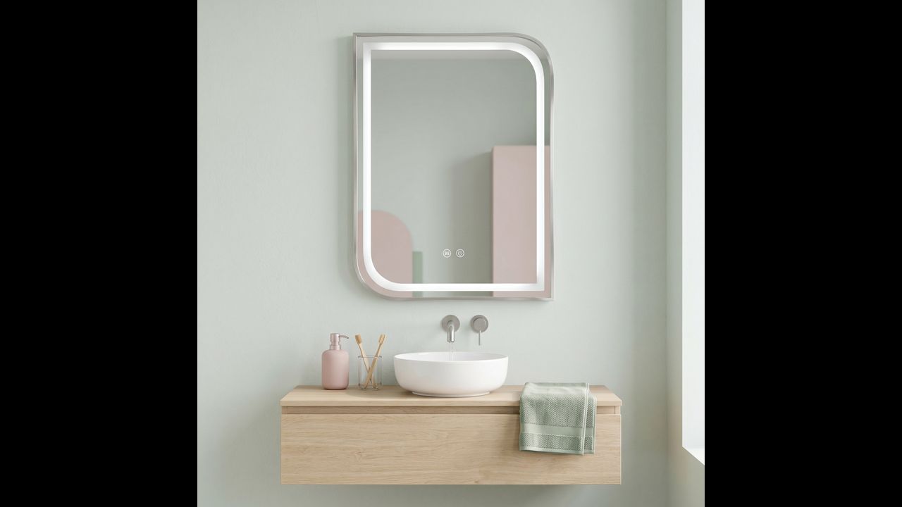 Desideri introdurre nel tuo bagno un elemento che emani una calma eleganza e raffinatezza? Scopri lo specchio da bagno a LED Zone 80×60 cm in nichel spazzolato. Il formato più ampio unito al bagliore satinato del nichel amplia otticamente lo spazio, creando un’atmosfera di pace e stile moderno.